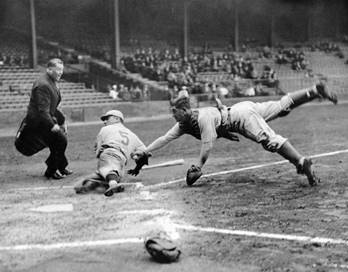 Mickey Cochrane Making acrobatic tag of Long Island’s Otto Miller in the 1931 TCBA World