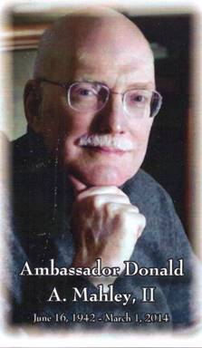 Ambassador Don Mahley passed away after a two year battle with pancreatic cancer on March 1, 2014. Husband of Julianna Stephenson Mahley for 45 years, he had a career in the U.S. Army for 27 years with work at the National Security Council and Arms Control and Disarmament Agency. Later he was confirmed as the State Department Ambassador serving as Special Negotiator for Nonproliferation. His work on the protocol for the Biological Weapons Treaty, establishing the Office for Prohibition of Chemical Weapons, and negotiating the recently signed Arms Trade Treaty is notable.