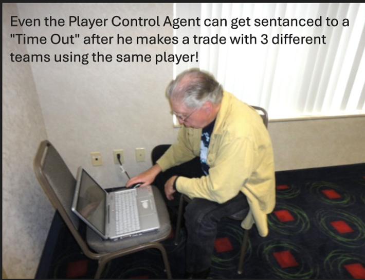 I always thought Player Control was one of the hardest jobs, keeping all the rosters, all the players, all the cash and Caps, and all the trades straight. With the pinochle of achievement coming in Lancaster/Grantville/Harrisburg, when you generally ran the auctions and afterwords had 23 other teams coming to you en masse to Cut, while announcing trades, and more cuts, all in preparation of the Free Agent Draft sometimes beginning a mere 8 hours hence!