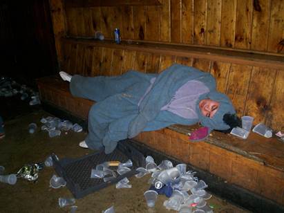And that’s the situation I’ll leave you in. I haven’t hit the ENTER key yet………………..if Mitchell gets a hit or a walk or an error, the Spans win. If Sajdak gets the out, the game goes Extras and he gets bumped up to a grade 6. But regardless of what happens, it has been a helluva ballgame for him, against a pretty good hitting team. Well… Ken the Sage retired the .432 hitting Mitchell to end the inning after walking the bases loaded with two outs. Guess he tossed what Earl Weaver would call a “half a pack inning!” Freemen go down 1-2-3 in the top of the 10th……………………and Hack Gilbert sends out The Sage to start the bot of 10th, but he is now UP to a grade 6. (that’s six times better than a grade 1) He’s faced 46 batters so far. Again, regardless how this comes out, it’s a very unique game. I don’t recall anything like this before with a grade 1 starting, and the micromanager literally refusing to take him out. On his 49th batter, pitcher Sajdak gave up a ‘hit and run’ double to Pete Reiser, scoring Rucker from firstbase with the game winner! Starrucca wins in ten, 5-4 to even the series. An expedition of team officials went out after the game looking for Mgr Hack Gilbert……and found him at the far end of the dugout, passed out from last nites game 1 celebration. He’ll have some ‘splainin’ to do, especially when he has to tape his starting pitchers arm back onto his torso. (and his wife wants to know what he was doing in the squirrel outfit)