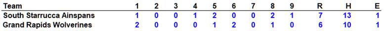Ainspan Doc Crandall takes the mound for this one, in his most important start of the year! George Bell for the Wolverines. So far in the series, after 6 games, NEITHER team has won a Home game! Amazing, but true. And Bell rings in with 5 admirable innings, giving up one 1 earned run. Nelson follows with 2 more innings, and the same 1 earned run. And Beebe plays a copycat role here… 2 more innings 1 earned run. From the Wolverine pitching view; it was enough of an effort to win the game. But they were going against a Specialist in his field today. Doc Crandall advanced inning after inning with surgical precision. The Wolves couldn’t find any prey to feast on, no meatball pitches, no weaklings at the back of the herd to pick on. Crandall picked a fine day to come up with a complete game, 4 hit shutout. He never gave Grand Rapids a toehold, and they went on a hunger strike today. Starrucca, behind Doc Crandall, wins the deciding game, 5-0. And the series. And advance to meeting Bradenton in the Championship series. Congratulations to Jeff and the Wolverine Team for a fine season!