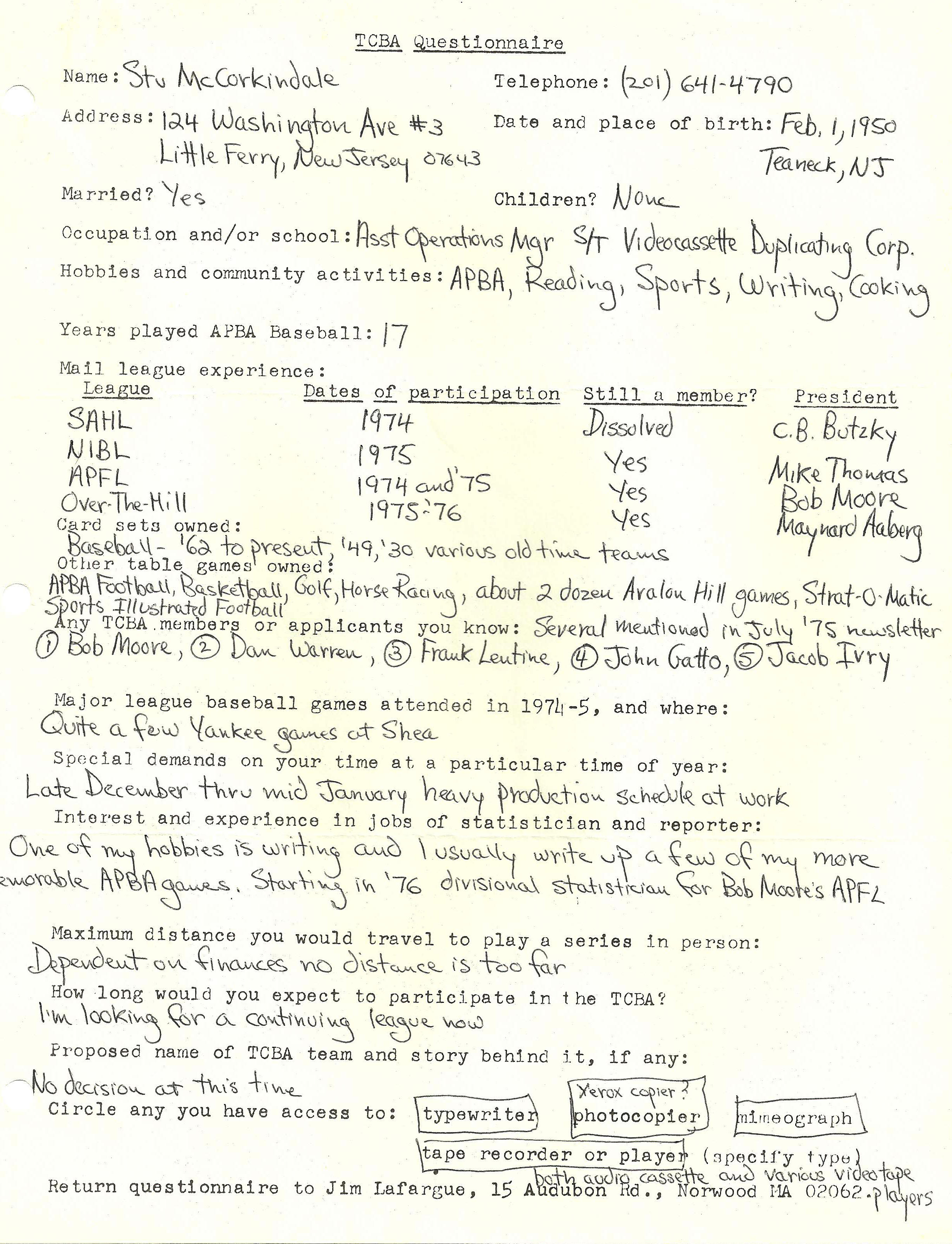 Jim McEneaney - In the midst of my first full season of TCBA, one Lyman Bostock was having a monster season--when the car radio announced he'd been shot dead in Gary, Indiana.... Frank Lentine in 10-19-78 TCBA Report - “I’m sure all baseball fans, and especially this reporter, were shocked and saddened by the tragic death of Lyman Bostock. It was particularly upsetting to me because he was a member of my TCBA team. As corny as it sounds, I feel a bit closer to the players on my team as I follow their successes and failures daily in the box scores. In Lyman’s case it was mostly success. It is very depressing to me to realize that I will never see his name again included in the league leaders where it should be.” Jerry Siciliano in November, 1978 - “Connecticut is fined $1000 for sending the results of the Norfolk at Connecticut series to Norfolk’s old address and causing Dan Warren great mental anguish.” Bob Braun - Four of five protests against Santa Barbara by Hyde Park were allowed by NL statistician Frank Lentine.