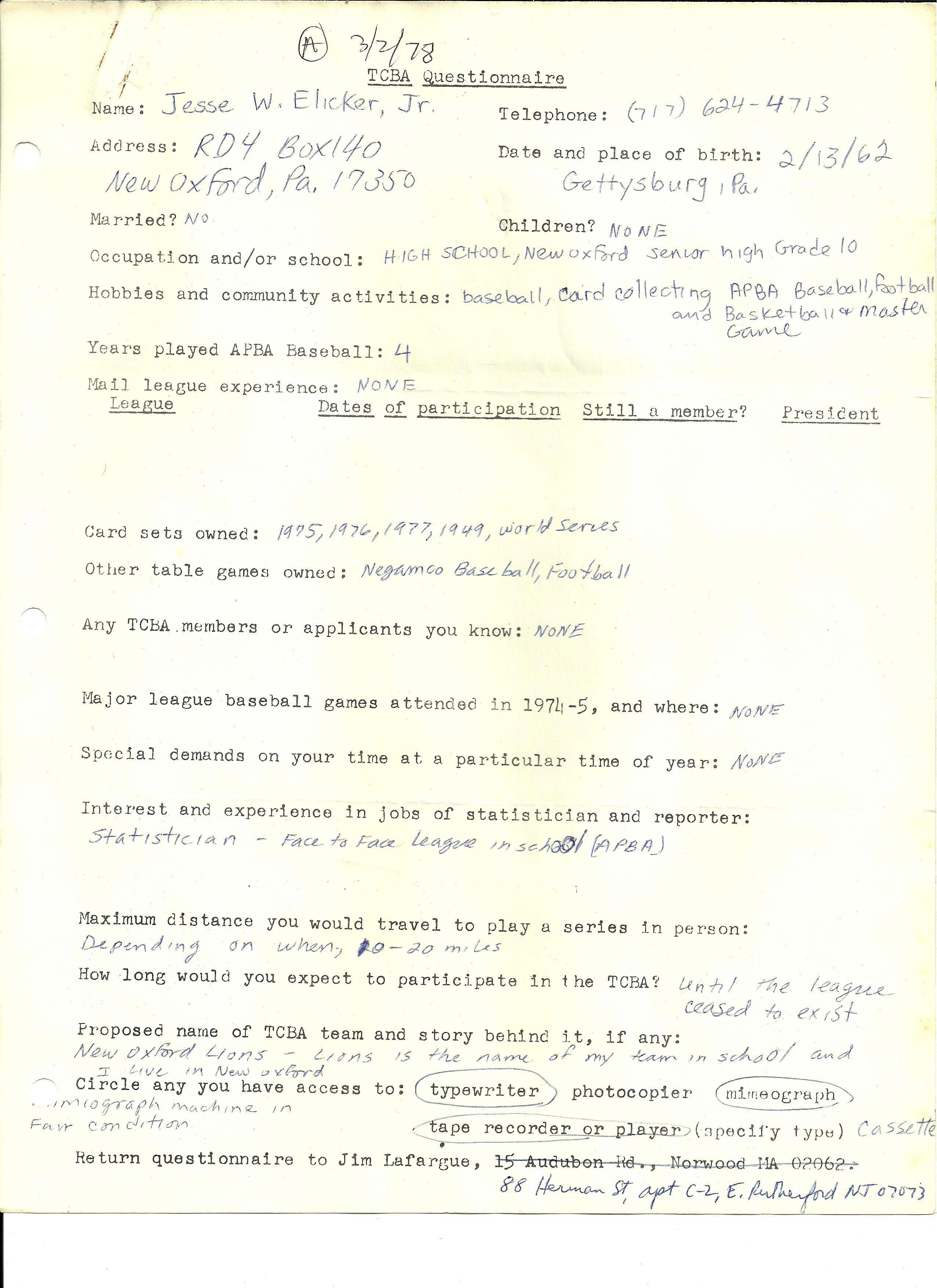 Jesse Elicker's Original Application